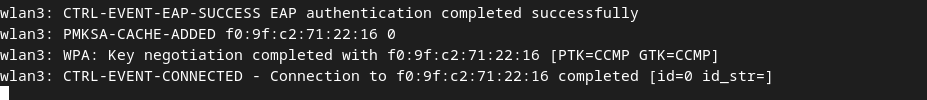 root@WiFiChallengeLab:~# wpa_supplicant -i wlan3 -c mgt.conf