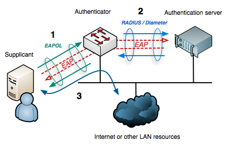 supplicant, que es el dispositivo del usuario (como una laptop o celular), intenta conectarse a la red. Para iniciar la comunicación utilizaEAPOL (EAP over LAN), que es el protocolo que permite enviar información de autenticación dentro de la red local. En esta etapa, el cliente envía sus credenciales, pero todavía no tiene acceso a la red; únicamente está intentando autenticarse. Después, elauthenticator(que normalmente es unswitch o access point) recibe esta información, pero no valida las credenciales por sí mismo. En lugar de eso, actúa como intermediario y envía la información al servidor de autenticación mediante el protocoloRADIUS. El servidor RADIUSes el encargado de verificar si las credenciales son correctas. Aquí pueden utilizarse distintos métodos de autenticación comoEAP-TLS, PEAP o EAP-TTLS, dependiendo de la configuración de la red. Finalmente, el servidorRADIUSresponde alauthenticatorindicando si la autenticación fue exitosa o no. Si las credenciales son válidas, elauthenticatorpermite el acceso a la red abriendo el puerto para el cliente, lo que le da acceso a internet o a los recursos de laLAN. Si la autenticación falla, el acceso es denegado y el cliente no puede conectarse.